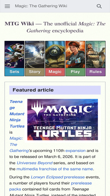 54%important news our wiki will merge with the magic: the gathering wiki on gamepedia over the next few weeks. for more details please read this blog post. in case you have questions or want to help out, feel free to contact an admin. magic: the gathering (colloquially magic or mtg) is a...