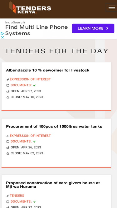 86%Tenders in Kenya: Discover Public, Private, Government, and NGO Sector Tenders Across Kenya With Ease. Your Premier Partner For Seamless Tendering and Procurement Solutions.