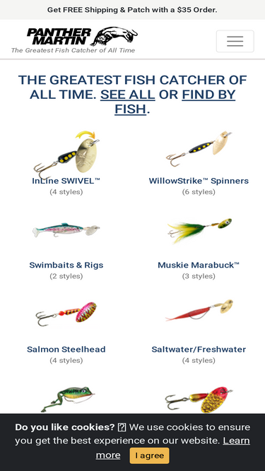 95%panther martin | great fishing lures for trout, bass, salmon, steelhead, muskie and more. | world famous since 1958 | over 1000 colors and sizes | factory direct
