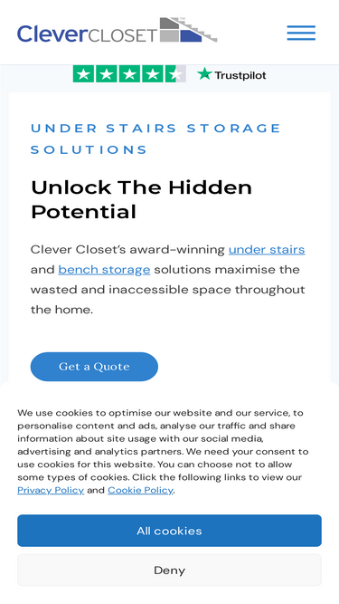 93%Clever Closet is the leading provider of under stair storage in the uk. Talk to us about maximising the storage space beneath your stairs.