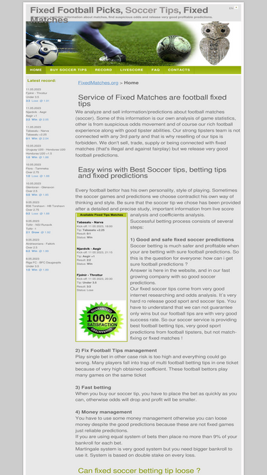 100%we sell predictions about football matches and soccer games but not fixed matches or fixed games. our fixed football tips are also called soccer picks. from these soccer predictions you could made profit even fortune.