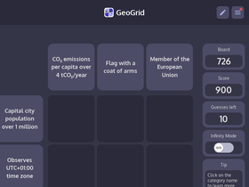 74%GeoGrid - Play GeoGrid, a daily trivia game to test your geography knowledge! Challenge yourself with fun quizzes and trivia, and explore world geography.