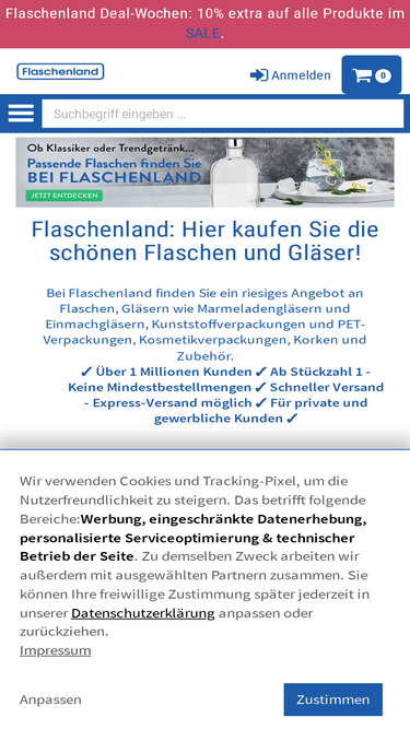 Flaschen, Gläser & Verschlüsse Großhandel online kaufen. Schneller Versand. Entdecke unsere große Auswahl jetzt bei flaschen.de!