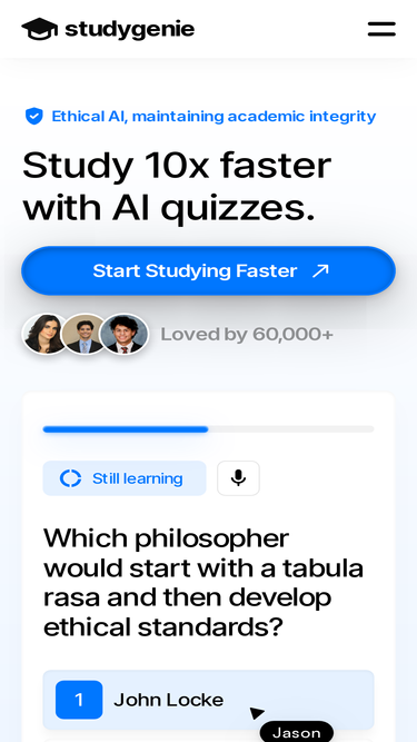 71%Your All-in-One Study Space with AI powered features like quiz generator, flashcard maker, summarize, chat with AI and more.