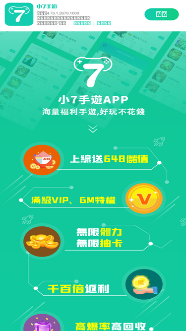 78%小7手游,9年专业福利手游平台!全网独创的免费版手游模式,官方正版游戏,每日送最高10000元无门槛充值代金券!让您花更少的钱享受更多快乐!