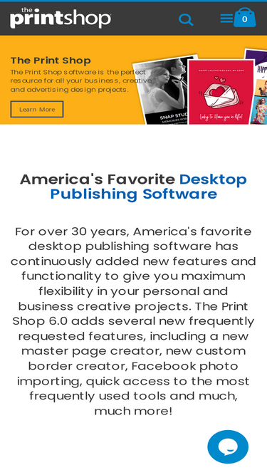 74%body {font-family: Arial;} /* Style the tab */ .tab { overflow: hidden; /*border: 1px solid #ccc; background-color: #f1f1f1;*/ } /* Style the buttons inside the tab */ .tab button { background-color: inherit; float: left; outline: none; cursor: pointer; padding: 40px 16px; transition: 0.3s; font-size: 14px; padding-top:8px; /*border: 2px solid #ccc;*/ } /* Change background color of buttons on hover */ .tab button:hover { background-color: #ddd; color: #0088cc; } /* Create an active/current tablink class */ .tab button.active { border-top: 2px solid #08c; border-bottom: none; background: #fff; box-shadow: rgba(0, 0, 0, 0.14902) 0px -2px 3px 0px; color: #0088cc; } /* Style the tab content */ .tabcontent { display: none; padding: 6px 12px; border-top: none; } The Print Shop Deluxe 5.0 Graphic Design Studio Put your imagination to use and we'll take care of the restThe Print Shop Deluxe 5.0 is a creative design suite that's perfect for use in your home or small business. Whether you're a community organization wishing to reach out to member, a small business owner looking for templates, or a wannabe designer looking to create impressive ad materials, The Print Shop Deluxe 5.0 is perfect for you. Tap into your creative juices with help from our thousands of templates, images, and photos to create something truly unique. The Print Shop Advantage• Complete Layout and Design Tools• Templates for Every Project• Premium Images and Photos• Extensive Photo Editing Tools• Print or Save as HTML to Use Digitally• Professional Quality Results The Easiest Way to Create Sophisticated Design ProjectsMaking your own sophisticated design is a cinch with the Print Shop. No design experience necessary! We encourage a playful approach so you can see for yourself how easy it is to create something unique and professional in three easy steps:1.Pick a design. Choose the perfect style fr