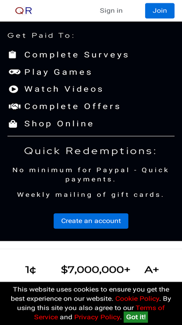 87%earn rewards for doing things you already do online! quickrewards rewards you for taking surveys, shopping online, reading emails, trying out products, visiting sites, playing games, and answering trivia questions, printing grocery store coupons and much more. redeem your earnings anytime for cash, gift certificates or prizes. most redemptions are sent within hours!