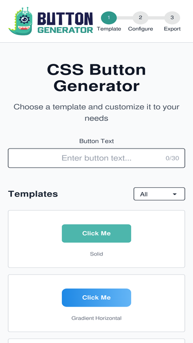 100%Free visual editor for designing CSS buttons. Customize colors, gradients, shadows, hover effects, icons, and animations. Export clean HTML and CSS code instantly.