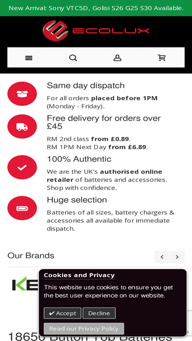 all lithium ion batteries 18650, 21700 and 26650 sizes. flat top, button top, tab's. reliable source for all your 18650 battery needs. uk stock, fast shipping!