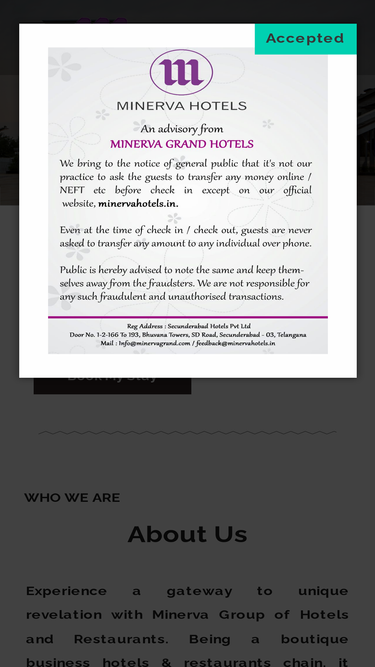 76%Grand Trunk Road - Nellore https://minervahotels.in/wp-content/uploads/2024/10/BLUE-FOX-TEASER.mp4 WHAT WE ARE Minerva Grand Nellore the latest Jewel in the crown of Minerva Grand Group, located in the rice bowl of India. It has 106 Elite Rooms & Suites catering to every class of traveler be it business or leisure from India & abroad. Its downtown location give easy