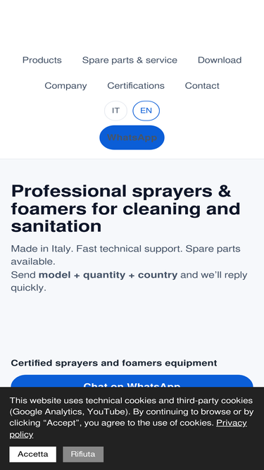 lanzoni italy, manufacturer of washing equipments: pneumatic / electric sprayers and foamers.
