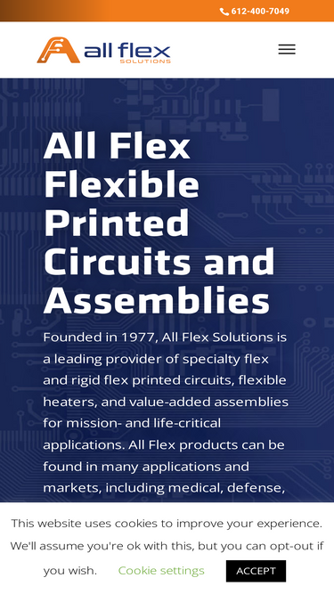 100%Manufacturer of single and double sided printed and etched flexible circuits.
