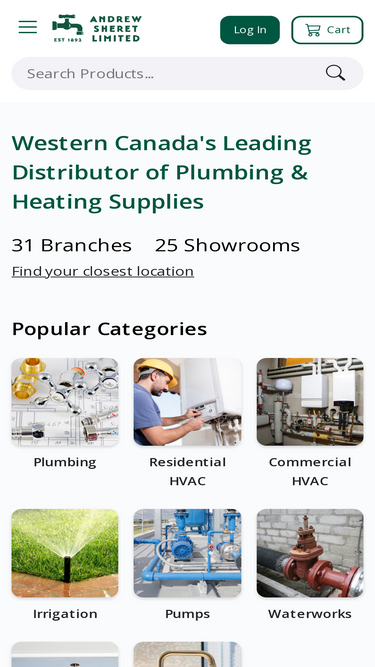 84%top-rated by its customers for selection and expertise, andrew sheret limited is recognized as an industry leader for plumbing, heating supplies, hvac systems, irrigation, pumps and water works supplies.