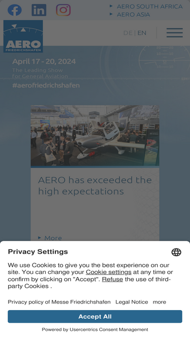 41%AERO Friedrichshafen is the global platform for all aspects of General Aviation – discover the variety of our industry in 12 exhibition halls and our static display ranging from Gliders, Ultralights, piston aircraft and helicopters up to Business Aviation.