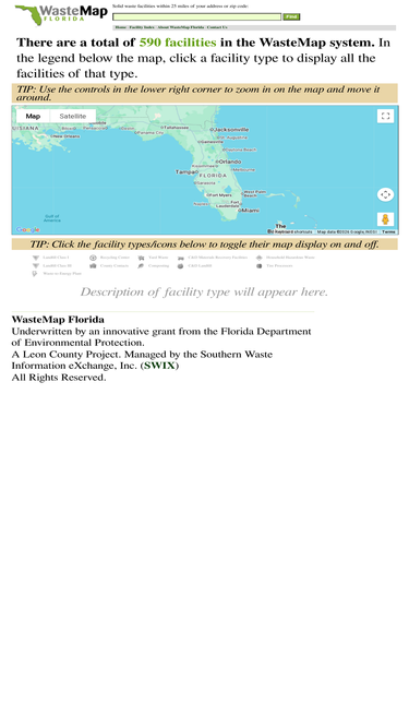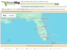 82%wastemap florida provides citizens of the sunshine state with an easy-to-use, web-based gis mapping system to locate solid waste facilities in their local area.