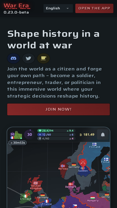 76%War Era is a free-to-play multiplayer geopolitical strategy game with no pay-to-win mechanics. Join the war and lead your country to victory!
