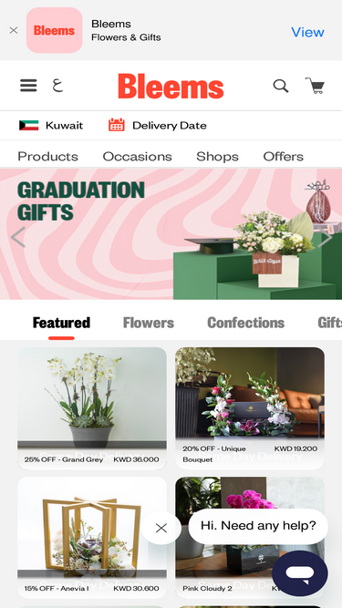 100%أرسل الزهور نضرة والكيك والشوكولاتة والهدايا مخصصة مع خدمة التوصيل السريع في نفس اليوم في جميع أنحاء الكويت والمملكة العربية السعودية والإمارات العربية المتحدة وقطر والبحرين وعمان من بليمز.