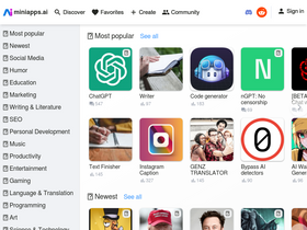 52%Browse 74 Privacy-policy AIs. Includes tasks such as Global news summaries, Meme battles, Bypassing AI content detection, YouTube summaries and Travel itineraries.