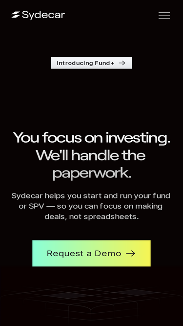 63%Sydecar is a deal execution platform for venture investors. We handle back-office operations for emerging venture investors, automating banking, compliance, contracts, and reporting so that customers can focus on making deals and building relationships.