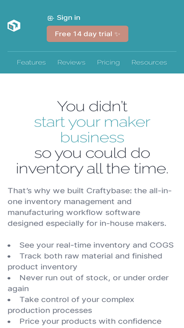 76%Craftybase automates inventory, recipe costing & orders for small-batch makers — see stock, costs and profit in real time. Free trial, no card needed.