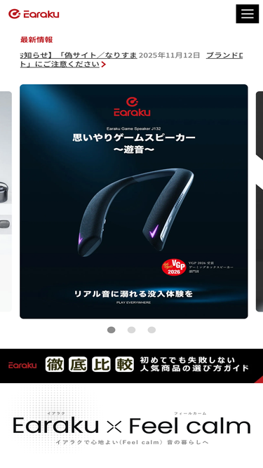 74%EarakuはBluetoothイヤホンを始めとするオーディオ製品の専門ブランドです。暮らしの中での音の価値を見直したい。ストレスフリーな音、もっと耳を楽にしたい…そんな思いから「Earaku」は生まれました。ライフスタイルが多様化する中、一人ひとりに寄り添いFeel calm(心地よい癒し)を体現する音声機器とライフスタイルを提案します。