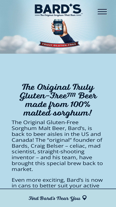 86%Created by a celiac who also loves great beer, Bard's malted sorghum beer has the great taste of traditionally brewed beers with none of the gluten.