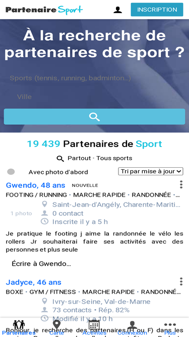 trouvez des partenaires de sport près de chez vous ! course à pied, randonnée, tennis, vtt, badminton... motivez-vous à deux ou plus !
