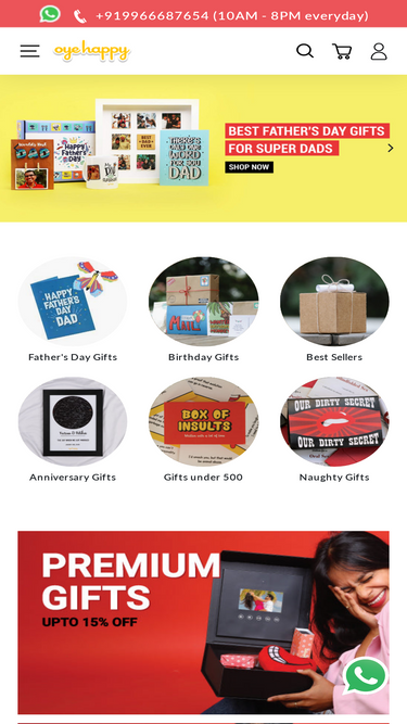 84%Shop from a wide range of gift items at Oye Happy, a gift store online. Get customized and unique gifts for everyone and for all occasion. Send gifts to your loved ones online.