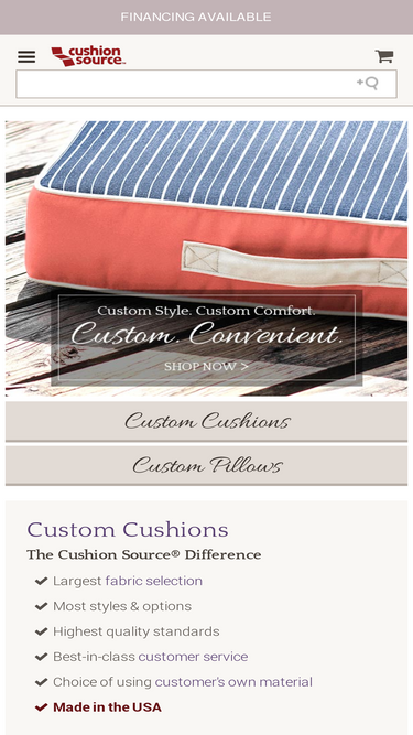 86%welcome to the original online source of high quality designer cushions and pillows. customcushions.com takes great pride in bringing our customers the highest quality american made products possible using only the finest fabric choices from sunbrella, dupont fiber filling