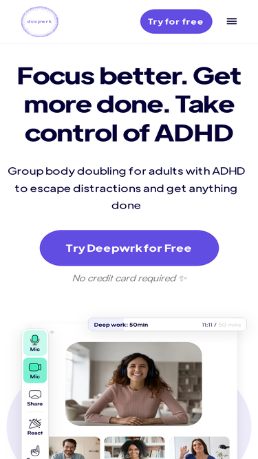 57%focusmate.com's top 5 competitors in January 2026 are: additudemag.com, deepwrk.io, bodydoubling.com, psychologytoday.com, and more.