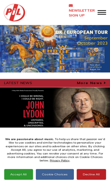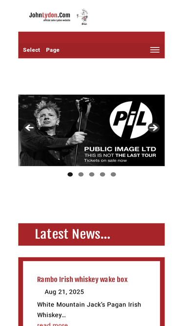 92%Official John Lydon / Johnny Rotten website run on behalf of the Public Image Ltd (PiL) and Sex Pistols frontman and lyricist