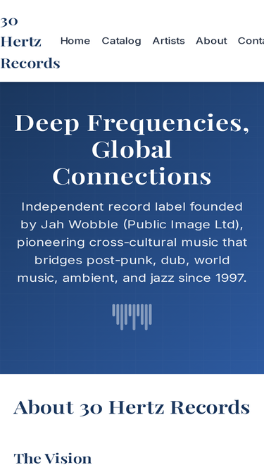 30 Hertz Records - Independent record label founded by Jah Wobble (Public Image Ltd) in 1997. Pioneering cross-cultural music blending post-punk, dub, world music, ambient, and jazz.