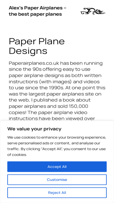 82%Paperairplanes.co.uk has been running since the 90s offering easy to use paper airplane designs as both written instructions (with images) and videos to use since the 1990s. At one point this was the largest paper airplanes site on the web, I published a book about paper airplanes and sold 150,000 copies! The paper airplane video […]