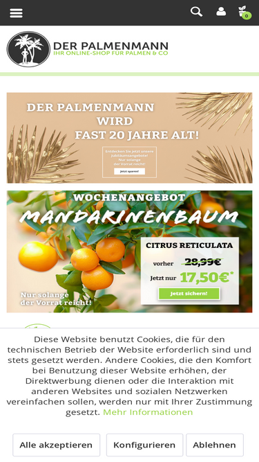 83%Die Hanfpalme Trachycarpus fortunei ist der Klassiker unter den Freilandpalmen. Mit einer Frostverträglichkeit von bis zu -17/18°C ist sie fast überall auspflanzbar. Viele kennen sie noch unter Tessiner Palme oder Chamaerops exelsa. Die Trachycarpus fortunei kommt ursprünglich aus dem asiatischen Hochgebirge, wo man kaum Palmen vermutet. In verschneiten Höhen von bis zu 2500m wurde die Hanfpalme erstmals 1712 von einem deutschen Arzt erwähnt. Erst 1830 kamen die ersten Palmen aus Japan nach Europa und haben seitdem immer mehr Freunde und Liebhaber gefunden. Vor allem in den letzten Jahren hat Trachycarpus fortunei einen waren Boom in den deutschen Gärten erlebt. Durch ihr schnelles Wachstum und der leichten Pflege ist dies die perfekte Anfängerpalme, um mit Sammlung von Freilandpalmen zu beginnen. Es empfiehlt sich für die Hanfpalme einen sonnigen etwas windgeschützten Standort wie z. B. an einer Hauswand zu wählen. Ein halbschattiger Platz geht natürlich auch, wird aber durch etwas langsameres Wachstum bestraft. Ausgepflanzte Exemplare wachsen deutlich schneller als Palmen im Topf und haben zudem eine größere Frosttoleranz. Bei Kübelhaltung muss man bei der Frostverträglichkeit immer 3-4 Grad minus abziehen, da ein Kübel schneller durchfriert und der Palme die Möglichkeit der Wasserversorgung genommen wird. Vorteil bei der Kübelhaltung ist natürlich, das sie sich bei Sturm und zu starkem Frost die Palme einräumen lässt und keinen Schaden nehmen kann. Bei einer Überwinterung sollte aber darauf geachtet werden, das sie kühl steht und nicht bei bereits zu starkem Frost eingeräumt wird. Der Temperaturunterschied wäre sonst zu groß. Die Palme fängt in frostfreien Räumen an Wasser zu verbrauchen und würde bei noch gefrorenem Kübel einen Schaden nehmen. Vermeiden sie auch ein ständiges Ein- und Ausräumen. Wenn einmal drin, dann drin! Am besten ist es immer die Hanfpalme auszupflanzen, da ihre Wurzeln dann tief genug gehen können und eine Wasserversorgung im Winter gesich