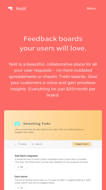 62%Collect feedback in a central place that your users will love. Prioritize feedback, create a roadmap with just a few clicks and keep everyone up-to-date with automated updates.