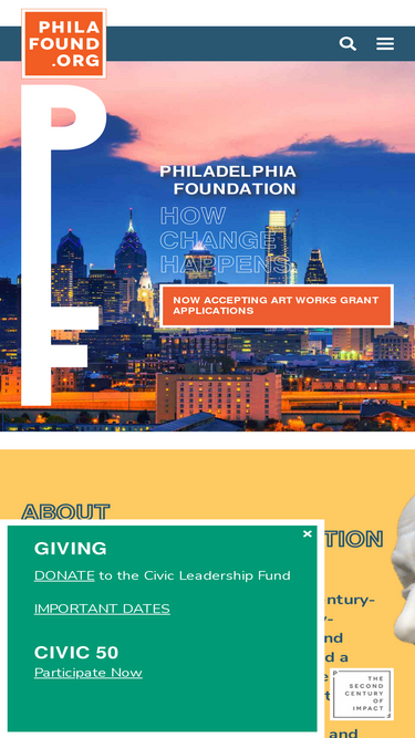 74%For more than a century, Philadelphia Foundation has increased philanthropic investment in the community, fostering the economic, civic and social vitality of Greater Philadelphia.