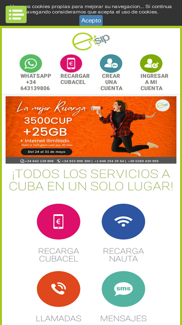 60%te ofrecemos el mejor precio y calidad en llamadas a cuba, recargas a cubacel y envío de sms a cuba y el mundo. te acercamos a cuba.