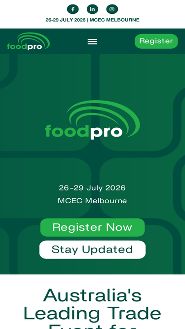 100%foodpro, the longest running and most trusted trade exhibition for the food & beverage processing and manufacturing industry in Australia.