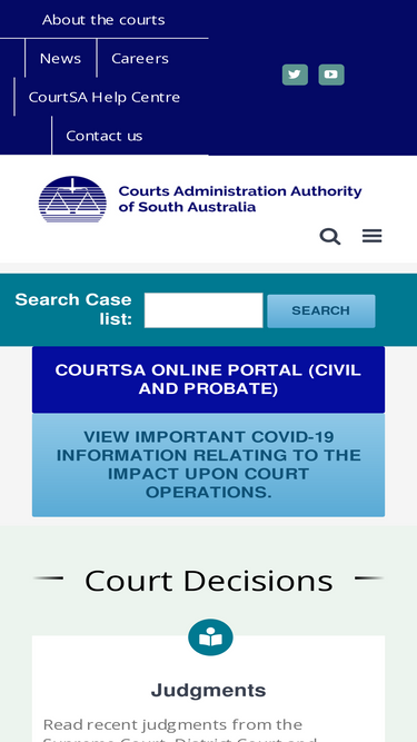 91%The Courts Administration Authority (CAA) administers justice on behalf of the people of South Australia. It is independent of the legislative and executive arms of government and is the means by which the judiciary of the state controls the administration of courts through which judicial power is exercised.