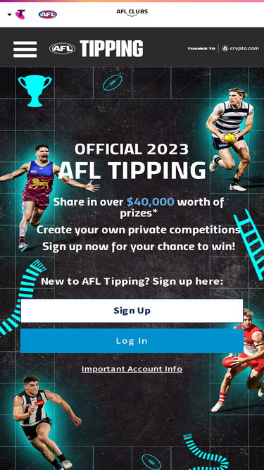 89%The Official Footy Tipping Competition of the AFL. Great prizes up for grabs. Create or Join a comp to play against family, friends & work mates!
