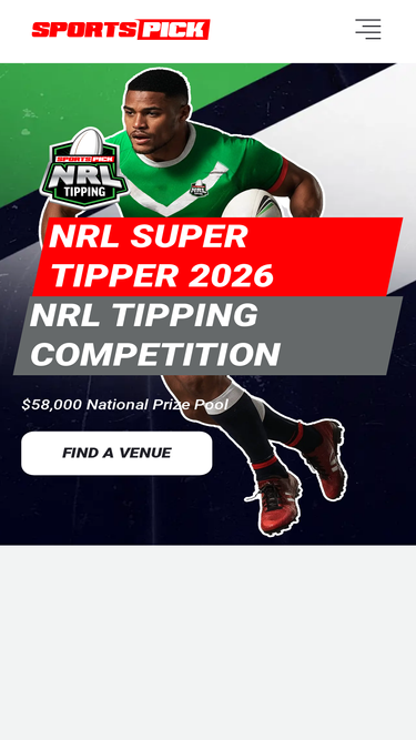 87%find a venue to watch live sports and join our local and national tipping competitions with sportspick! from afl & nrl to racing with, big prizes & community.