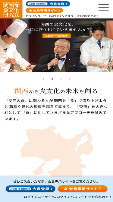 91%関西の「食文化」に対する強い思いを持った人達が中心となって立ち上げた、料理人による料理人のための情報発信・交流サイト「関西食文化研究会」は、「交流」を大きな柱として「食」に対してさまざまなアプローチを試みる組織です。