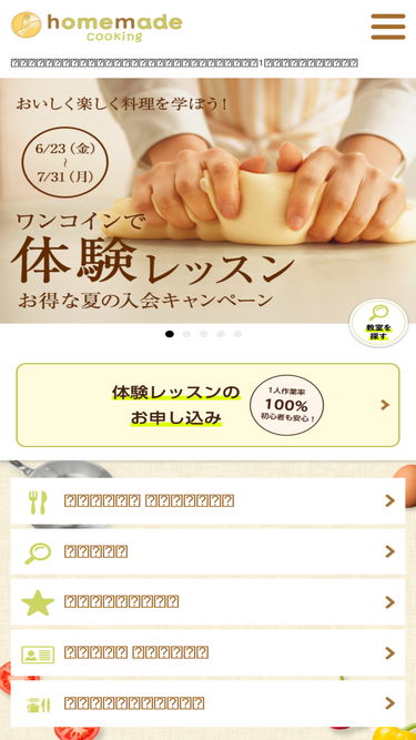 99%【ホームメイドクッキング公式】約38万人の会員をもつホームメイドクッキング。オリジナル製法により誰でも簡単に作れるパン教室をはじめ、料理教室やケーキ教室など豊富なコースをご用意しています。また、4歳から小学6年生までを対象とした子供の料理教室も大変人気です。