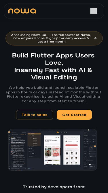 53%Nowa is an AI Flutter app builder to develop iOS, Android, and Web apps fast with vibe coding and visual editing. Publish to App Store, Play Store, or Web. Edit or download the source code. Integrate APIs, Supabase, Firebase, GitHub, and custom packages.