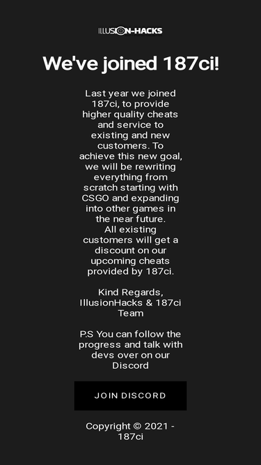 100%illusion-hacks has joined 187ci!, we will provice csgo cheat and more games in the near future ( world of tanks, call of duty, battlefield, warframe and so on)