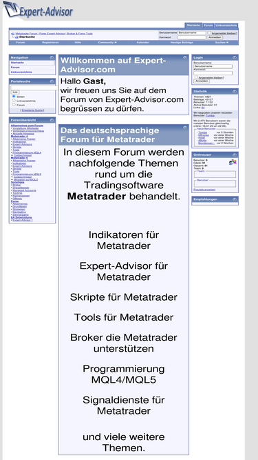 83%das deutschsprachige forum für metatrader sowie indikatoren, expert-advisor, skripte, programmierung in mql4 und mql5 und viele weitere themen.