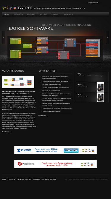 83%eatree is the best metatrader expert advisors builder. it supports both mql4 and mql5 languages for the mt4 and mt5 platforms. you can easily create expert advisors. no coding, programming or mql knowledge is required.