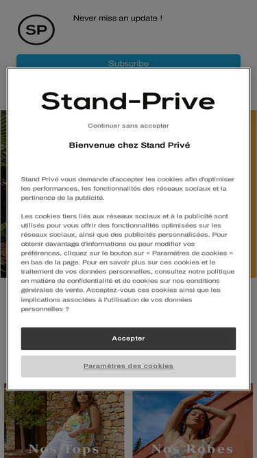 82%Bienvenue sur Stand-Privé, votre e-shop dédié à la mode femme pas chère. Chaque saison, découvrez de nouvelles collections tendance de vêtements, chaussures et accessoires pour toutes les silhouettes, du 36 au 48. Découvrez des petits prix sur toutes les collections.