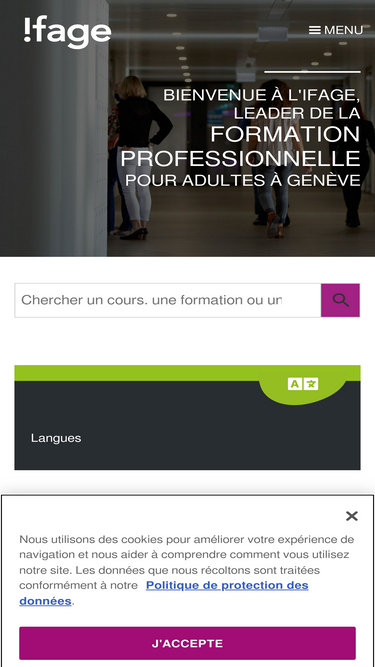 84%L'ifage, Fondation pour la formation des adultes à Genève, a pour but de favoriser la formation continue et le perfectionnement professionnel des adultes dans les domaines suivants: langues, management et administration, industrie et bâtiment, nouvelles technologies.