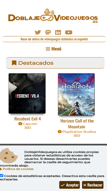68%doblajevideojuegos.es es la mayor base de datos de videojuegos doblados al espa�ol y actores de doblaje de videojuegos, con v�deos, grabaciones y todo tipo de contenido relacionado